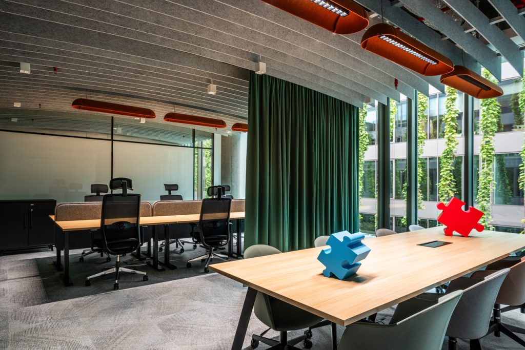 Puzzle Office pokazuje, że nowa generacja biur to także społeczność. Nie open space, lecz środowisko, w którym spotykają się różne branże i style pracy. To przestrzenie sprzyjające wymianie doświadczeń i koncentracji – znajduje się tam 457 biurek, 21 sal konferencyjnych, strefy spotkań, pokoje do wideokonferencji, sale warsztatowe i miejsca do nieformalnych rozmów. Właśnie taki balans pomiędzy interakcją a prywatnością definiuje dziś jakość biura.
