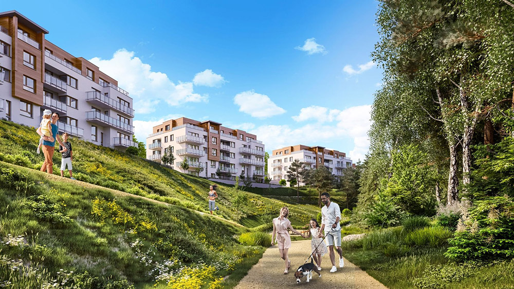Unikalnym atutem budynków w tej ofercie będzie ich wyjątkowe położenie – na zboczu wzgórza, rozciągającego się nad terenem rekreacyjnym Zielona Dolina oraz zacisznym laskiem w otulinie Trójmiejskiego Parku Krajobrazowego. Dzięki temu przyszli mieszkańcy będą na co dzień cieszyć się malowniczymi widokami i bliskością przyrody, a równocześnie korzystać z typowo miejskich udogodnień, dostępnych w ramach osiedla, a także całej dzielnicy – mówi Justyna Glazar, Członek Zarządu Hossy.