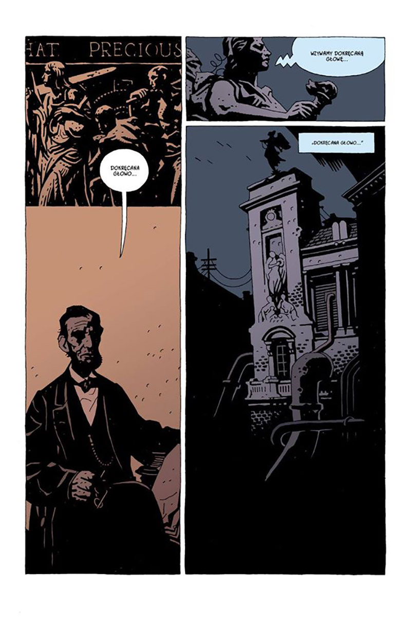 Wyobraźcie sobie, że polityka to tylko przykrywka do prawdziwej walki o władzę. Ustawy, wybory, obsadzanie rządów jest zabawą dla ludzkich pionków, bo gdzieś w na drugim planie pradawne istoty, demony i kosmici walczą o supremację. W ich planach Ziemia jest tylko narzędziem, zazwyczaj skazanym na rychłe zużycie. Tak przynajmniej kreuje swoje wizje Mike Mignola, w jego świecie jesteśmy równi mrówkom błąkającym się w otępieniu po porzuconej paczce czipsów. Na szczęście ludzka władza świadoma skali potęgi paranormalnych zjawisk postanowiła nie być bezczynną, od wieków szukając wsparcia wśród niezwykłych sojuszników. W Niesamowitej Dokręcanej Głowie i innych kuriozachpoznajemy specyficznego śmiałka, mechaniczną głowę zakończoną wkrętem. Służy ona Prezydentowi Stanów Zjednoczonych Abrahamowi Lincolnowi, walcząc tym razem z zombie tłumaczem, pragnącym odczytać tajemniczą formułę i zawładnąć nad światem.