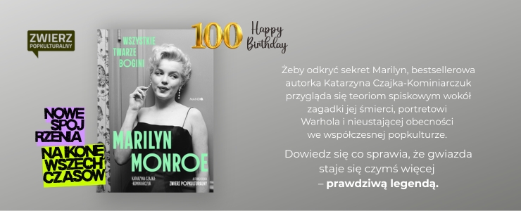 Więcej o Marylin Monroe w popkulturze przeczytasz w książce Katarzyny Czajki-Kominiarczuk, twórczyni bloga Zwierz Popkulturalny, która właśnie ukazała się w sprzedaży – „Marilyn Monroe. Wszystkie twarze bogini”.